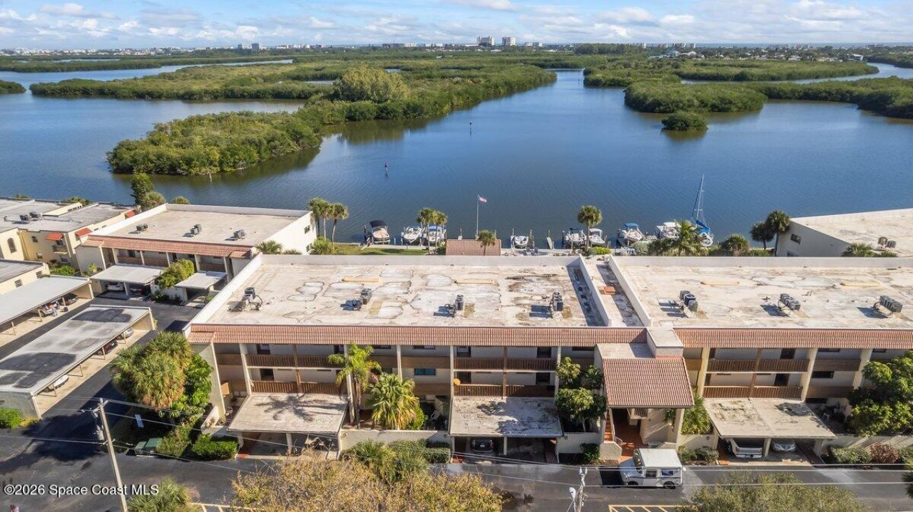 Truly mesmerizing direct riverfront views from this top floor 2 bedroom, 2 bathroom condo overlooking the Banana River in the heart of Cocoa Beach. Enjoy kayaking, boating and fishing from your backyard and playing golf at the 27 hole Cocoa Beach Country Club across the road from your front door. Watch manatee and dolphin play, the sun as it rises and the annual Christmas Boat Parade from the comfort of your private glass enclosed balcony. This updated condo features: New Air Conditioning unit, plantation shutters, storm shutters, all tile flooring, updated kitchen and bathrooms and is freshly painted. The community offers an elevator, large riverfront pool, gazebo, boat dock, kayak storage area, carport parking and much more. Just across the street is a public golf course, olympic sized swimming pool and tennis courts. The location couldnt be better... its quiet and yet close to the beach, shopping and restaurants. Come see the view and you will fall in love with this condo.