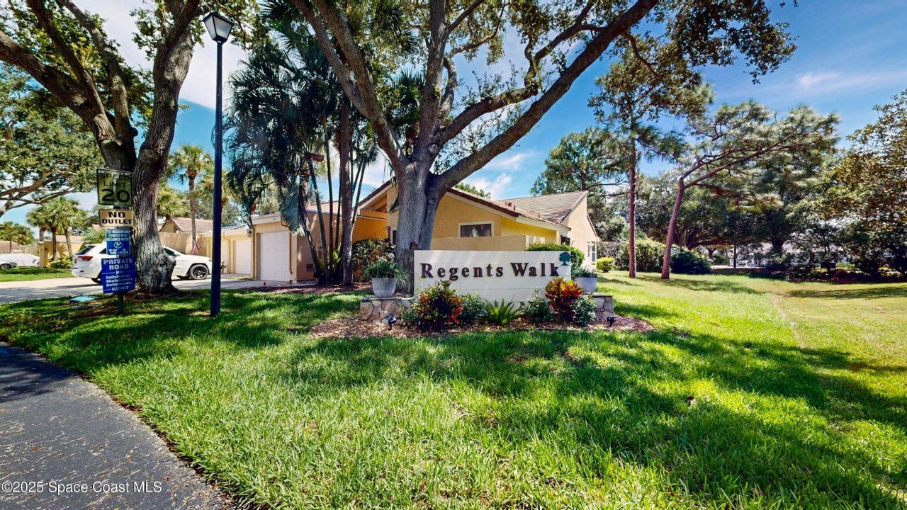 Tucked away in the desirable Suntree golf community, this one-story end-unit courtyard townhome combines charm with convenience. Just a short walk to Suntree Country Club & Golf Course, this well-kept home features 3 bedrooms (third currently set up as an office), 2 full baths, wood flooring, enclosed sun porch, and a private gated courtyard entry. Perfect for those seeking low-maintenance living, HOA benefits include a member-only pool, lawn care, and pest control. Regents Walk is an established community shaded by graceful Live Oaks, with owner-occupied residences only?no rentals allowed. Situated on a quiet dead-end street, it feels private and tucked away, yet remains close to shopping, dining, I-95, hospitals, and the airport. A true hidden gem where comfort, convenience, and the Florida lifestyle come together.