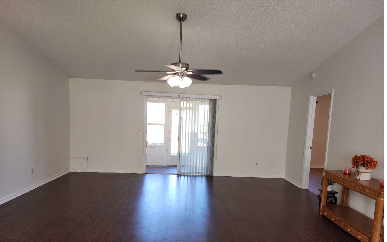 In move condition completely repainted, new flooring in bedrooms, both bathrooms has been updated with walk in showers, beautiful granite tops in kitchen tiled backsplash, Blinds through windows and 2 sliding glass doors.
