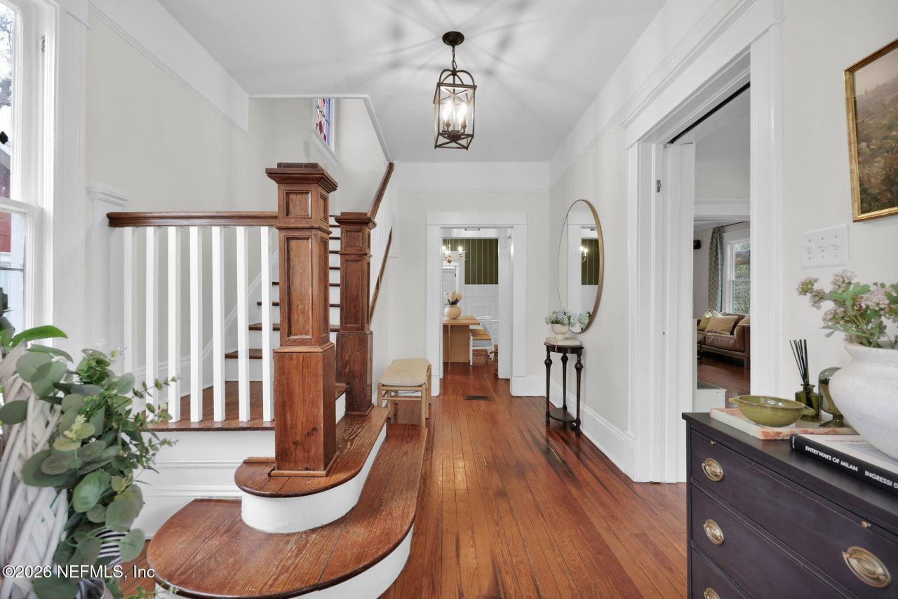 Step into timeless character with this beautifully preserved 1914 historic home in the heart of Riverside and Avondale, one of Jacksonville's most desirable neighborhoods. Thoughtfully updated while honoring its original craftsmanship, this two-story residence showcases rich hardwood floors, a classic fireplace, elegant sliding pocket doors, and a striking stained glass window that highlights the grand staircase. Formal living and dining rooms are enhanced by crown molding and wainscoting, while surround sound in the living room adds a modern touch.Offering 3 bedrooms and 2.5 bathrooms, the home includes a spacious primary suite with an oversized walk-in shower, a generous walk-in closet with in-unit laundry conveniently tucked inside and a recently renovated powder bathroom.The fully remodeled kitchen blends style and function, featuring KraftMaid solid wood cabinetry, Level 6 Fusion granite countertops, stainless steel appliances, and a handcrafted Zia Zellige tile backsplash. Enjoy Florida living year-round with multiple outdoor spaces, including a welcoming front porch, expansive rear deck, side pergola, and a private second-floor balcony.Major system improvements including high-efficiency HVAC, updated electrical and plumbing, reinforced foundation, and enhanced insulation throughout provide peace of mind, while a 5-stage reverse osmosis system, Series 48,000 water softener, natural gas tankless water heater, and garbage disposal bring convenience and efficiency to everyday living. A cement driveway and backyard shed add practical finishing touches.This rare offering seamlessly blends historic charm with modern comfort for the discerning buyer who wants it all.