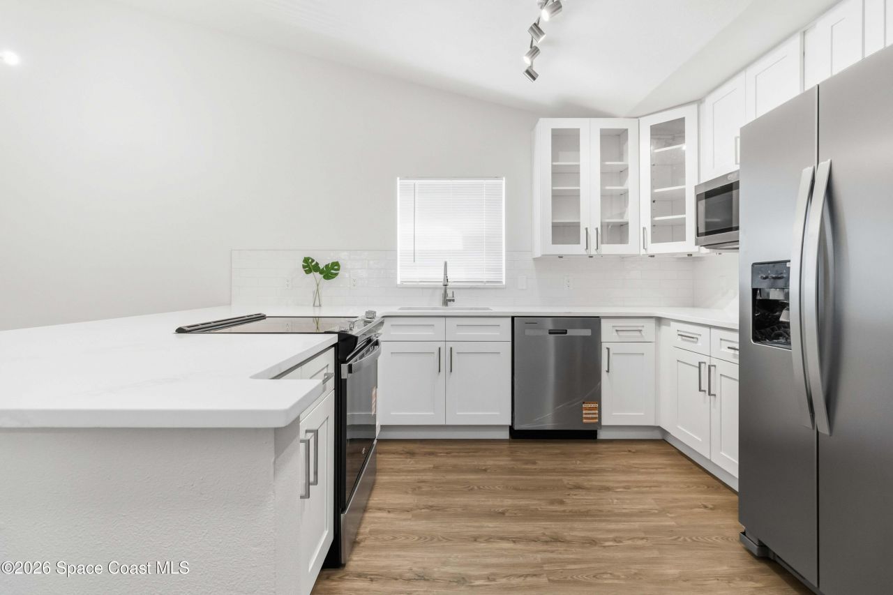 This beautiful home has a lot to offer. New roof, newer AC, new impact windows. Open style living room, dinning, and Kitchen. The upgraded includes new stainless-steel appliances, 42-inch shaker cabinets with quartz countertops and a beautiful backsplash. Renovated bathrooms include new vanity, light fixtures, glass shower and more. New vinyl flooring throughout. Additional include screen enclosure, fresh paint inside and out. Enjoy the benefits of a low HOA. Amenities just steps away, including a pool and tennis courts.