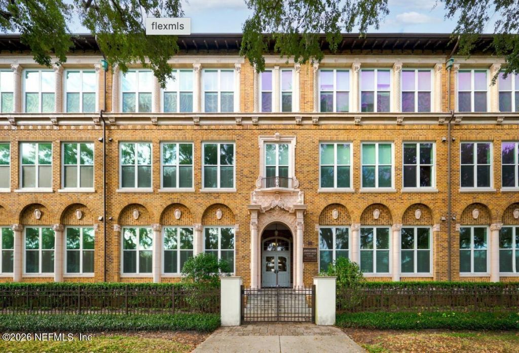 Welcome to effortless living in the heart of Historic Riverside! This well maintained 1-bedroom, 1-bath condominium is located in the iconic John Gorrie Condominiums-a charming, converted historic schoolhouse that perfectly blends timeless character with modern updates.This unit features dramatic 17-foot ceilings & oversized windows that fill the space with natural light,an open floor, warm wood flooring in the main living area, a stylish kitchen featuring stainless steel appliances and sleek quartz countertops-perfect for everyday living or entertaining.Residents of John Gorrie enjoy a variety of amenities, including a fitness center, cozy reading room, gated parking, beautifully landscaped courtyards that provide a peaceful retreat right at home.Located in the highly desirable Historic Riverside neighborhood, this condo offers a walkable lifestyle just steps from local favorites like Bold Bean Coffee, a variety of dining options, and the scenic St. Johns River.