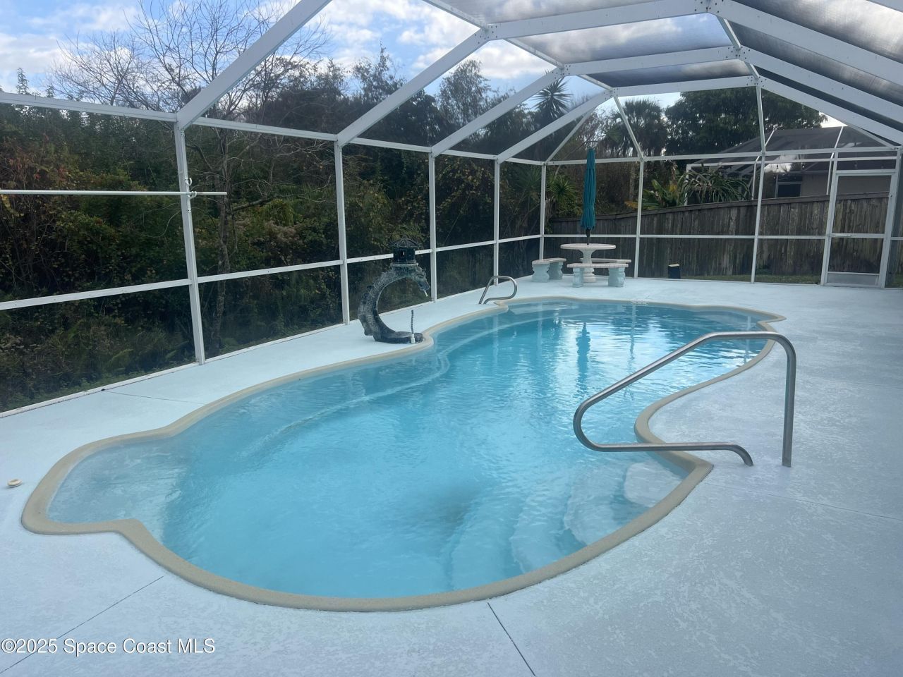 Welcome to this original owner CONCRETE BLOCK POOL home tucked away in the desirable, tree-lined Pineda Crossing community. Featuring 3 bedrooms, 2 baths, plus BONUS ROOM ideal for a home office and or optional 4th bedroom. The expanded driveway includes a third parking pad, while the oversized 18x31 (538 sq ft) garage accommodates a full-size truck, camper, and motorcycles. Recent updates approx 2 years include A/C, hot water heater, windows, 4K custom double entry doors, and roof replaced in 2017 with updated Hurricane impact garage door, reverse osmosis. Private well for irrigation. Relax in the caged saltwater Pool with Water feature overlooking a serene nature preserve, filling the home with natural light and tranquil views (with extra concrete pad and screened sitting area or exterior kitchen area?). Convenient to beaches, shopping, VA Hospital, I-95, Port Canaveral, and less than an hour to Orlando International Airport.