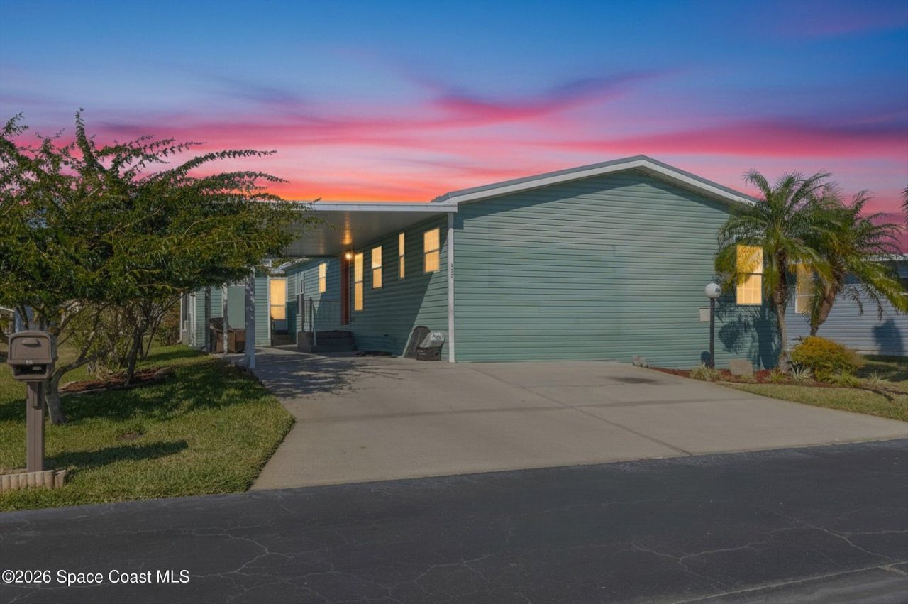 Coctails on the lanai in your waterview home where you can view the rocket lauches where you sit.Indoors you will find an open floor plan with 3bedroom,two baths.Master bath has a shower separate from the sunken tub ,two sinks in the vanity as well.This community is gated and you Own your land.Free parking for your boat or RV.Plenty of activities in this senior development where your HOA dues are low and include Cable.Internet,lawncare and security.