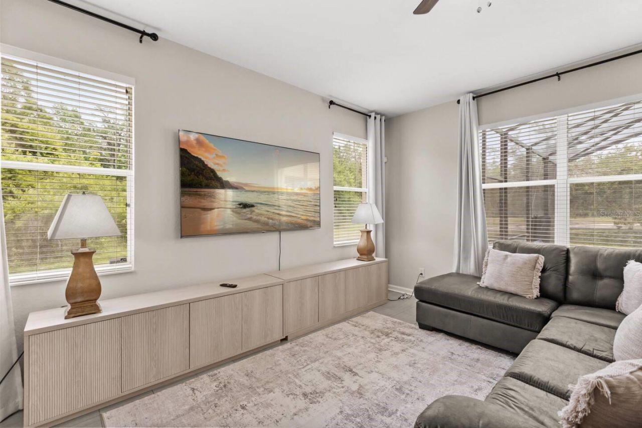 Turn-key and fully furnished home in a desirable gated resort community in Kissimmee! This beautifully maintained property features new laminated flooring in all bedrooms, a screened-in pool, and tranquil lake views. Located next to a preserved conservation area, the home offers added privacy and a peaceful setting. Professionally decorated and set up for short-term rentals, with strong management already in place, making it ideal for investors or as a primary residence. Residents enjoy access to a stunning resort-style clubhouse with pool, fitness center, movie theater, game room, sand volleyball court, and more. A perfect blend of comfort, lifestyle, and income potential. Must see!!