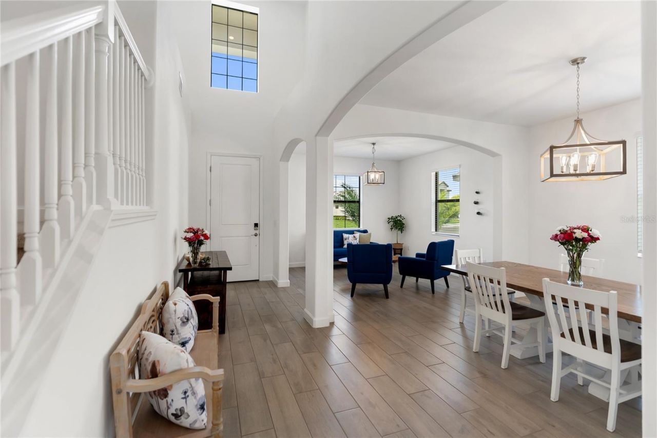 Welcome to refined, resort style living in one of Lakewood Ranch's most sought after gated communities, where space, style, and everyday comfort come together seamlessly in this beautifully designed five bedroom, three bathroom residence in Lorraine Lakes. Thoughtfully designed for both comfort and functionality, this spacious home offers a desirable layout featuring a first floor bedroom and full bath ideal for guests, multigenerational living, or a private office, while the primary suite and additional bedrooms are privately situated upstairs alongside a versatile loft space. The main living area showcases an open concept design filled with natural light, enhanced by soaring ceilings, expansive tile flooring, and seamless indoor outdoor flow overlooking peaceful water views. The chef's kitchen is both stylish and functional, complete with crisp white cabinetry, quartz countertops, stainless steel appliances, a large center island with seating, and a walk in pantry, all opening to the dining and living areas perfect for everyday living and entertaining. The primary suite offers a relaxing retreat with generous space, a spa inspired bathroom, and ample storage, while the upstairs layout provides flexibility for a variety of lifestyles. Step outside to a covered and screened lanai where tranquil lake views create the perfect backdrop for morning coffee or evening relaxation. Residents of Lorraine Lakes enjoy an exceptional resort style lifestyle with amenities including a grand clubhouse, resort pool with cabanas, lap pool, state of the art fitness center, indoor basketball and volleyball courts, tennis and pickleball courts, playground, splash park, arcade, social director, and an on site restaurant and bar. Ideally located in the heart of Lakewood Ranch, this home offers convenient access to top rated schools, shopping, dining, golf courses, and is just a short drive to the world renowned beaches of the Gulf Coast including Anna Maria Island, Siesta Key, and Lido Key, as well as Sarasota, Bradenton, St Petersburg, and Tampa. This is a rare opportunity to enjoy luxury, space, and resort style living all in one exceptional home.