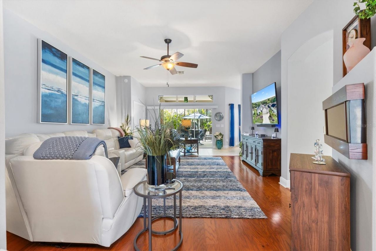 Custom Holly Designer Home with Pool, Golf Cart Garage, and High-End Upgrades in the Desirable Village of Sanibel. Located on a quiet cul-de-sac in the Village of Sanibel in The Villages, Florida, this custom 3-bedroom, 2-bathroom Holly Designer home with a private pool and golf cart garage offers a rare combination of upgraded finishes, thoughtful design, and true indoor-outdoor Florida living.At the center of the home is a beautifully redesigned chef's kitchen featuring 42-inch cabinetry with interior lighting, matching quartz countertops throughout, and both under-cabinet and above-cabinet lighting that enhance function and visual appeal. The kitchen is equipped with a center island, double ovens, a 6-burner gas cooktop, and a built-in desk area, creating an ideal space for cooking, gathering, and entertaining.The main living area, complete with an electric fireplace, flows seamlessly to the outdoor space through sliding glass doors, creating an open and connected indoor-outdoor living experience. Step outside to the screen-enclosed pool area with a block knee wall, designed for year-round enjoyment and privacy. The private pool features a Fastlane swimming system with adjustable current resistance, creating an endless swim experience ideal for exercise, training, or relaxation in your own backyard.The primary suite is privately located behind double doors and offers a tray ceiling, dual walk-in closets, and a mini-split air conditioning system for personalized comfort. Telescoping sliders provide direct access to the pool area. The primary ensuite features a zero-entry Roman shower, split dual vanities, and a private water closet with a pocket door and window for natural light.The guest wing offers both comfort and flexibility. Bedroom Two includes a built-in closet and is located next to an upgraded guest bathroom with a tiled walk-in shower, glass enclosure, quartz countertops, and a transom window. The third front bedroom features a tray ceiling and walk-in closet, making it ideal for guests, a home office, or hobby space.The laundry room has been enhanced with a quartz folding counter, built-in utility sink, and new washer and dryer, adding everyday convenience.Major improvements include a new roof installed in February 2026, new solar panels for pool heating, and a newly rescreened pool enclosure, providing both efficiency and peace of mind. Additional features include a golf cart garage, garage freezer, water treatment system, and HVAC serviced biannually by Munn's, reflecting consistent care and maintenance.The home also features an in-ground natural gas tank that fuels the cooktop and the poolside grill.Added value continues with Massey lawn care, pest control, and termite protection paid through December 2026, offering ongoing service and convenience for the next owner.Located in the sought-after Village of Sanibel, this home offers convenient golf cart access to recreation centers, golf courses, shopping, dining, and all that The Villages lifestyle is known for, including miles of golf cart paths, pools, clubs, and nightly entertainment at the town squares.This custom Holly Designer with a pool and high-end upgrades presents an exceptional opportunity to enjoy one of the most desirable lifestyles in Florida. Schedule your private showing today.
