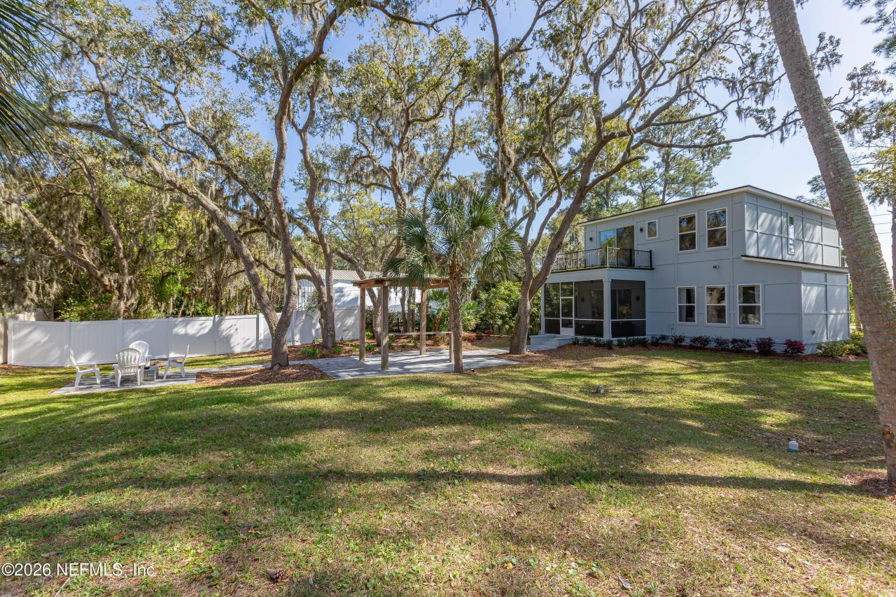 BY APPOINTMENT ONLY. NEW LIST PRICE. Avoid delays & rising costs of building -move into this beautifully finished residence set on a park-like 0.46-acre with views of the St. Johns River. Coastal contemporary design showcases soaring 10-foot ceilings, driftwood-tone luxury vinyl plank flooring, & refined neutral palette. Open layout centers around designer kitchen with quartz countertops, stainless appliances, & expansive island with bar seating. Primary suite offers spa-inspired retreat with dual vanities, oversized glass shower, custom closet, & private balcony with river views. Upstairs guest bath includes Jacuzzi tub/shower combo while bedrooms capture fountain views. Outdoor living features screened porch, paver patio with pergola and firepit. Surrounded by solar night lighting with professional landscaping & irrigation. Custom closets, remote roller shades, & whole-house water filtration. No HOA/CDD Property Highlights Built in 2023 3 Bedrooms | 3 Full Bathrooms 1,818 Sq. Ft. Park-like 0.48-acre homesite Views of the St. Johns River across the street No HOA Fees No CDD FeesInterior Features 10-foot ceilings throughout main living areas Driftwood-tone luxury vinyl plank flooring Neutral interior palette/ Coastal Accent Walls Smooth ceilings with recessed lighting Ceiling fans in family room & all bedrooms Washer/ Dryer to convey (1) 77 TV/ Bracket & (3) 55 TV's/ Brackets to convey Open-concept living and dining spacesKitchen Modern white cabinetry Quartz countertops & Backsplash Stainless steel appliances Large island with bar seating Walk-in pantry with custom storage systemPrimary Suite 2nd Floor with Balcony - views of St. Johns River Dual-sink vanity Oversized glass walk-in shower Custom walk-in closet systemBathrooms Three full bathrooms 1st Floor: Guest bath with full shower 2nd Floor: Upstairs guest bath with Jacuzzi tub and shower combination 2nd Floor: Primary Bath with oversized walk-in shower & dual vanity. Custom Storage Closets by Design custom primary closet Pantry organization system Storage under stairs with built-in organizationTechnology & Comfort Remote-controlled light-filtering roller shades Whole-house water filtration system Water softener Keypad entry for garage and front door Ring Camera by front door Electric vehicle charging station in garageOutdoor Living Screened porch Paver driveway & front walk Paver patio with pergola Firepit gathering area Professionally designed landscaping Irrigation system Mature oak and palm trees 6-foot vinyl privacy fence on sides and rear yardLocation St. Johns River views Convenient to Jacksonville International Airport Easy access to Amelia Island and Fernandina Beach Close to I-295 Nearby public boat ramps and Mayport Ferry Approximately 20 minutes to Downtown Jacksonville