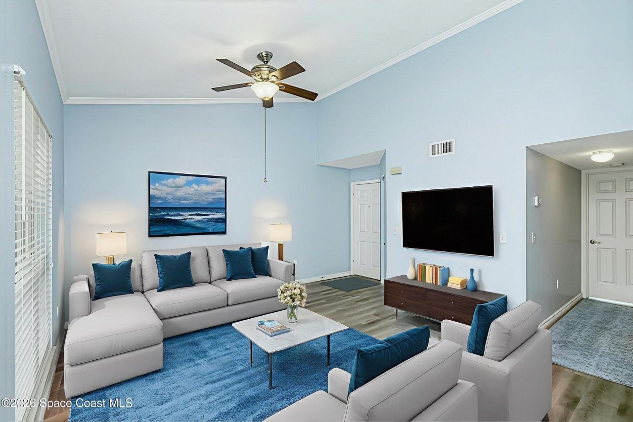 PRICE REDUCED! Imagine relaxing in this beautiful 2 bedroom, 2 bathroom condo with screened porch to enjoy the tranquil views of the Indian River. The coastal vibe, vaulted ceiling, top floor location includes updated luxury vinyl plank flooring 2020, modern impact windows & sliding door 2020 and AC 2019. The community offers a pool, spa and fishing dock to watch the rocket launches. Water, trash, basic cable and internet are all included in the HOA dues. Conveniently located for an easy commute to KSC, Orlando Airport, attractions and beaches. An application through the condo association is required. Seller is offering $2000 credit towards purchase of new appliances for the kitchen!