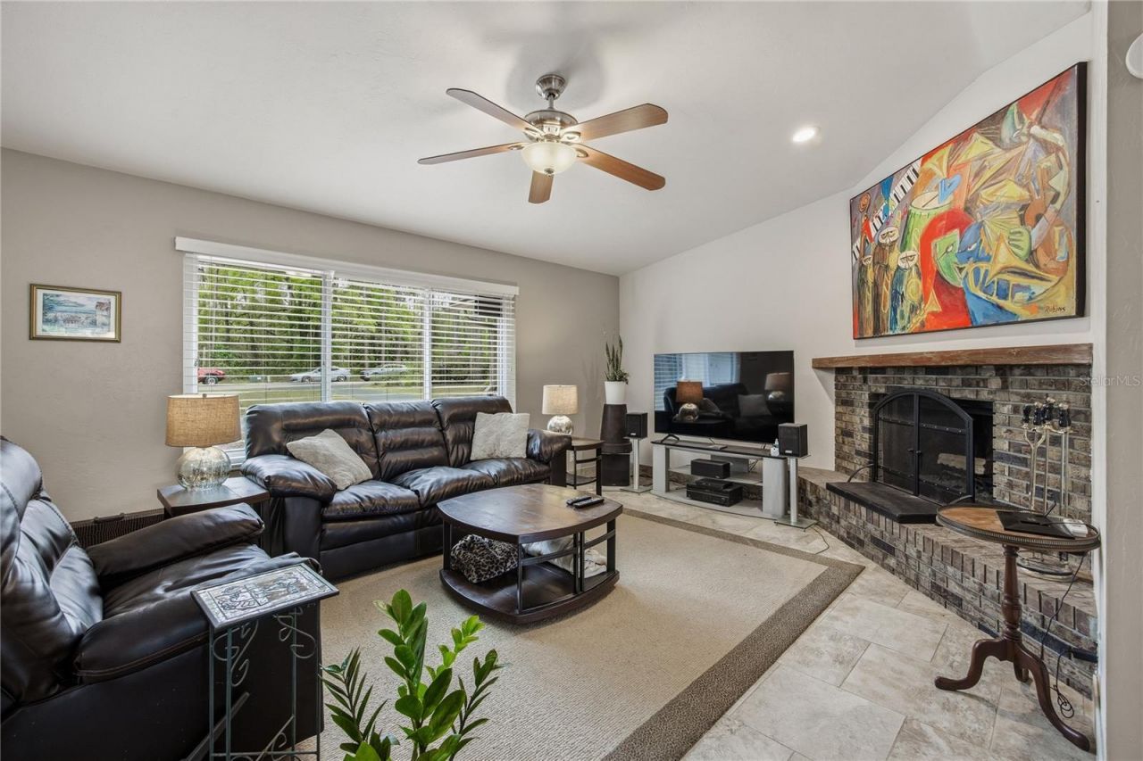 Welcome to this beautifully maintained 3-bedroom, 2-bath home situated on a spacious and private 1+ acre lot in a desirable, quiet neighborhood. Inside, you'll find a bright and open living area with vaulted ceilings and a cozy corner wood-burning fireplace-perfect for relaxing or entertaining. The home features tile and laminate flooring throughout for easy maintenance, along with an updated kitchen complete with modern appliances. Enjoy outdoor living on the screened, covered back porch overlooking a fenced backyard, ideal for pets, play, or gardening. The property also includes a shed for additional storage, a circle driveway for convenience, and a 1-car garage. Additional highlights include a new roof (2024), updated blinds, and a washer and dryer that convey. For those needing extra space, the property offers RV parking with 110/30 amp and 50 amp hookup and even includes a mower-making this home truly move-in ready.