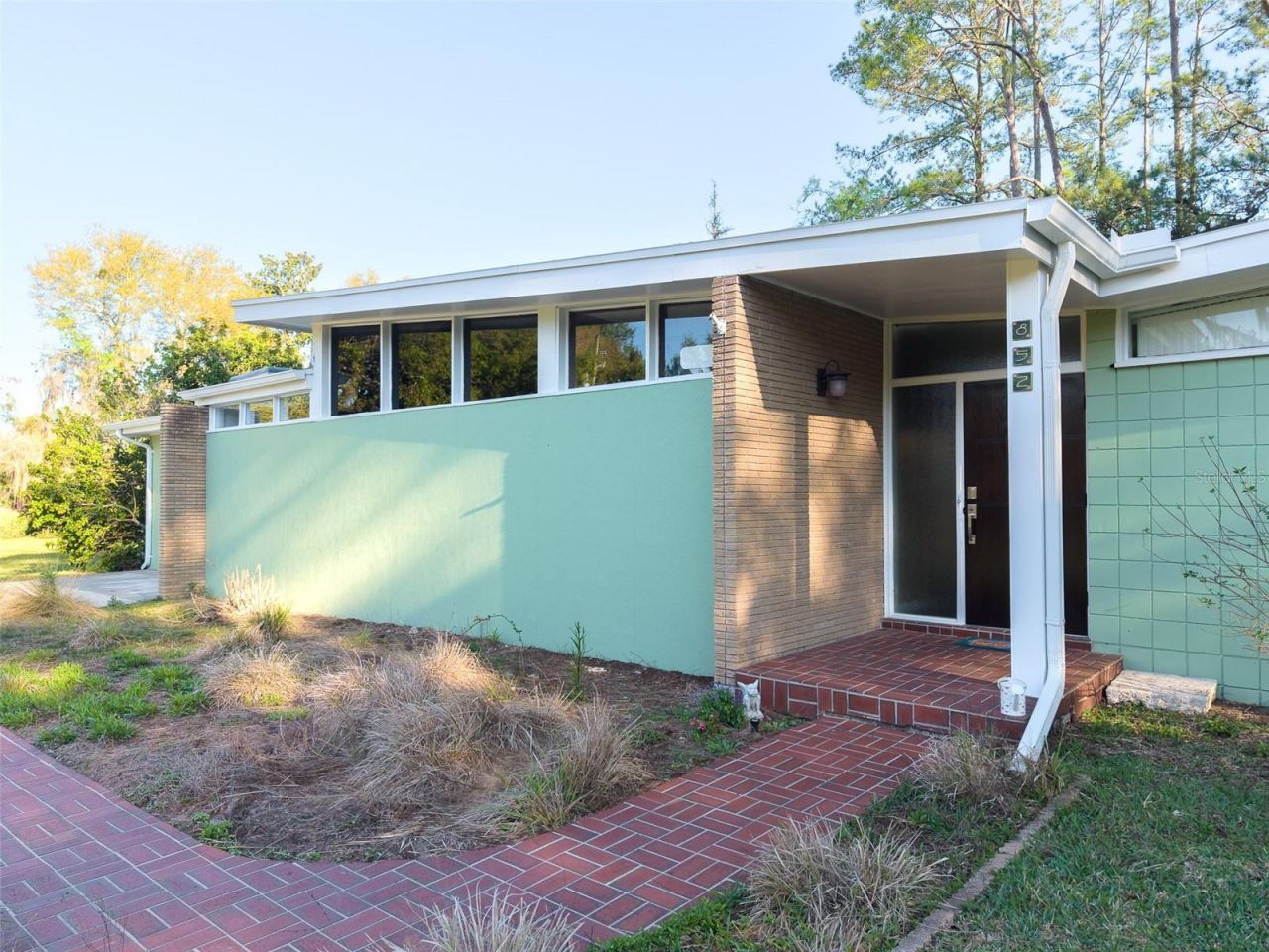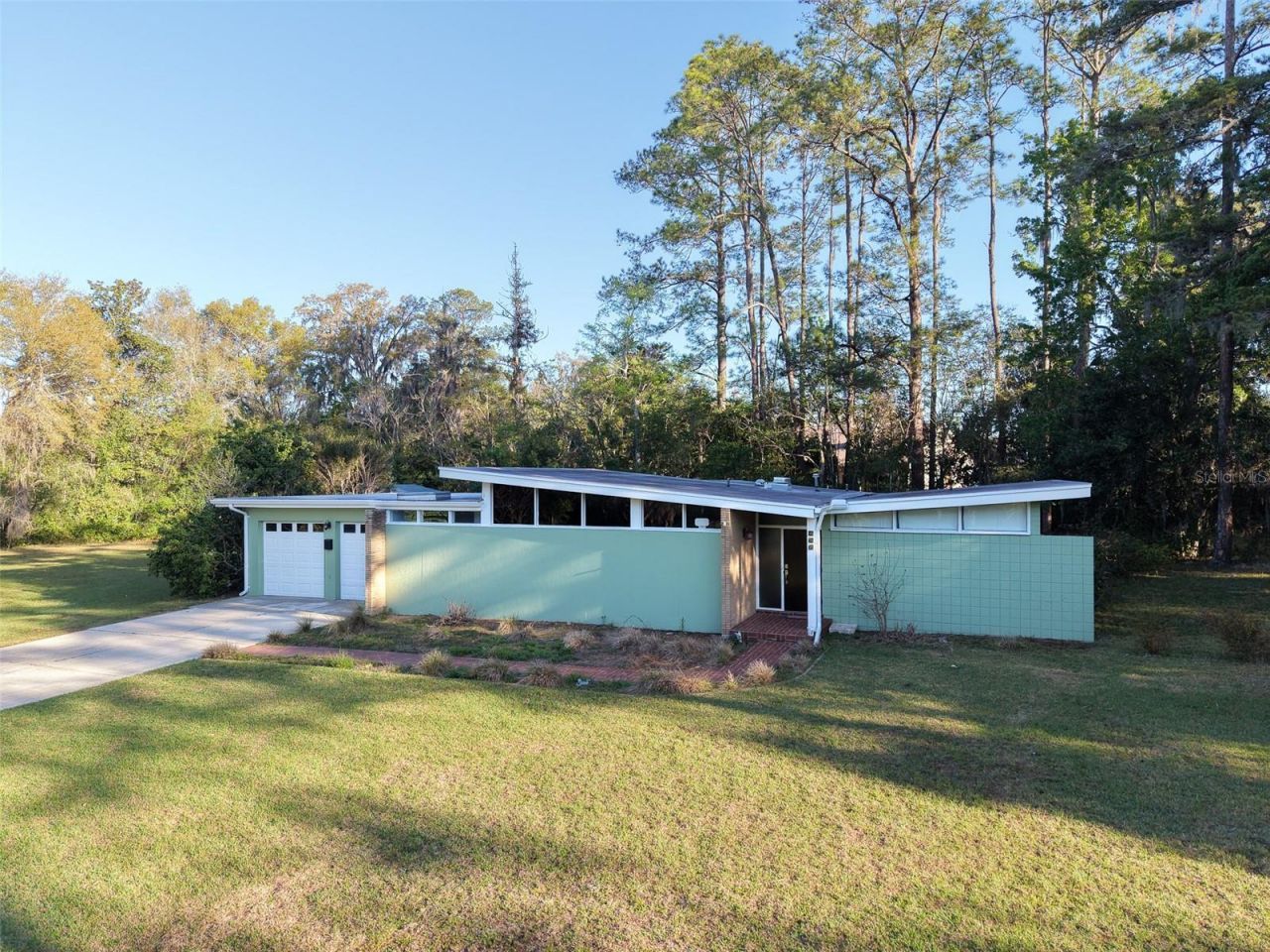 Welcome to Williston and this immaculate 3 bedroom 2 bath 1963 Mid-Century Modern home. Set on a generous 1.25 acre estate lot, it features an iconic butterfly roof and modern brick masonry that make a statement before you even reach the front door. Step inside to a tastefully updated interior bathed in light from its clerestory windows. The kitchen pairs original wood cabinetry with gorgeous new quartz countertops, backsplash, and a built-in breakfast bar. A separate rear media room opens onto a screened back porch, a perfect spot to enjoy a Florida sunset. The primary suite features a private bath and clerestory glass that floods the space with natural light while maintaining full privacy. The spacious guest bedrooms are separated by an updated guest bath. Updated electrical service features a generator hookup, an EV charger in the attached 2-car garage and a 400-amp service split equally between the home and detached metal garage. Some recent updates include: 2 NEW HVACs (2025), NEW tankless gas water heater (2023), NEW roof and skylights on main house (2019), NEW entry door complete with new framing and custom etched privacy glass. The home offers an unparalleled combination of privacy and access to Williston's small-town charm being only blocks from central Noble Ave, numerous restaurants and scuba diving sites. Williston also provides convenient 30 minute access to the University of Florida in Gainesville and The World Equestrian Center in Ocala. Call to schedule a tour of this truly one of a kind home!